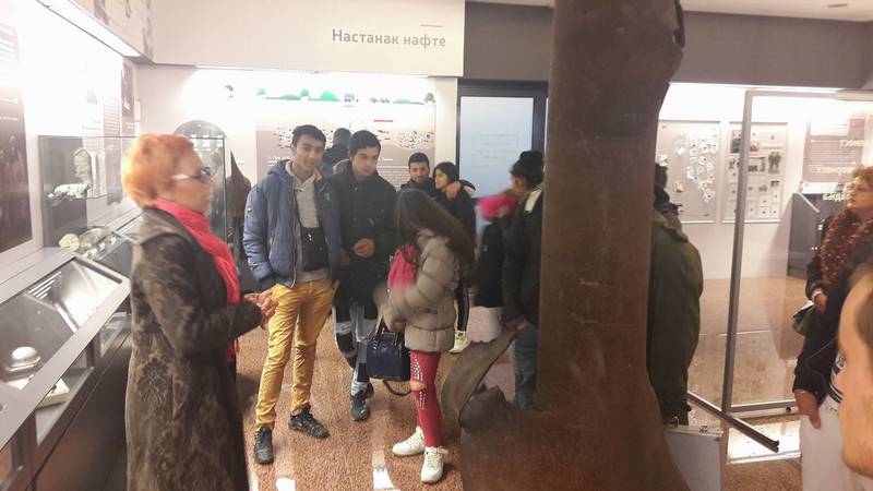 U mesecu novembru posetili smo muzej Naftne industrije Srbije (NIS). Posetu je organizovao Aktiv prirodnih nauka uz saradnju sa zaposlenim u muzeju. Polaznici su imali priliku da nauče nešto o prvim bušotinama, počecima istraživanja i proizvodnje nafte i gasa, preradi nafte i benzinskim pumpama. Vodič nas je sproveo kroz postavku muzeja hronološki, od nastanka NIS-a do sadašnjeg načina funkcionisanja kompanije. Među eksponatima prikazane su razne vrste nafte, bušilica, fotografije iz ranih perioda NIS-a, crpne pumpe, makete cisterni, predmete u čijem sastavu se nalazi nafta, razne instrumente za merenja potrebna za eksploataciju nafte itd.