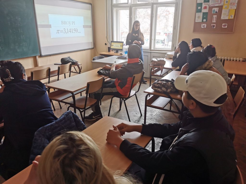 U našoj školi obeležen je Svetski dan broja pi. Pričali smo o nastanku broja pi, izračunavanju njegovih decimala i značaju ovog iracionalnog broja u nauci, ali i svakodnevnom životu.